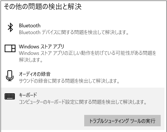 4.「キーボード」の横にある[実行]ボタンをクリックします。
