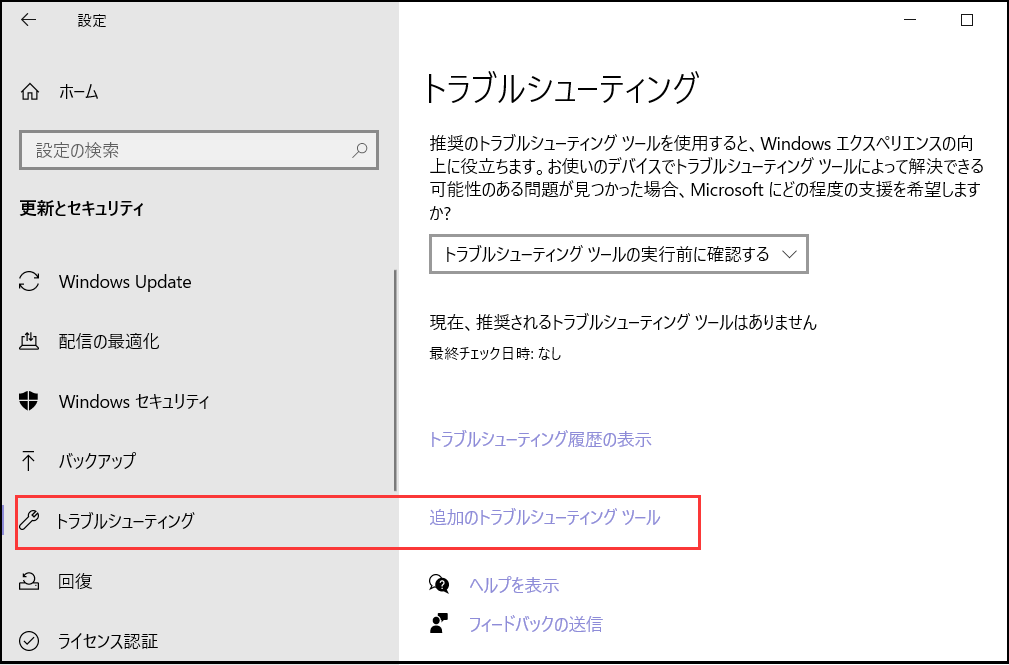2.検索ボックスに「トラブルシューティングの設定」と入力し、Enterキーを押します。