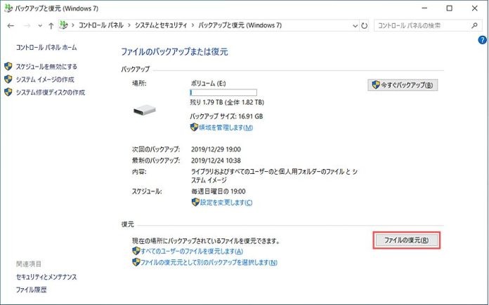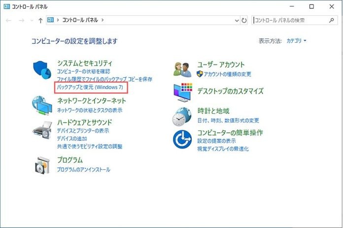 - ポップアップ ウィンドウで、[システムとセキュリティ] > [バックアップと復元] を選択します。