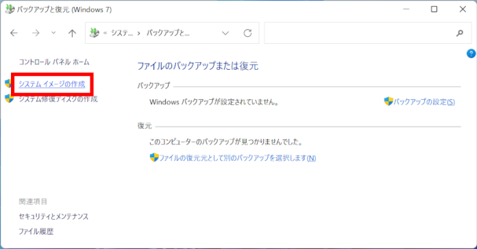 - 次に、[バックアップと復元]に移動(Windows 7)リンクを選択します。