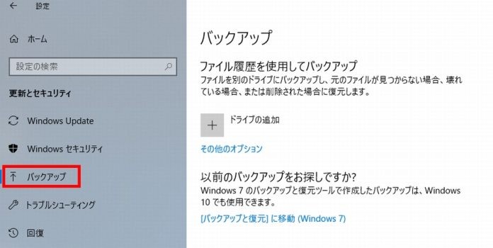- Win+I キーを使用して Windows の設定を開き、[更新とセキュリティ] > [バックアップ] に移動します。