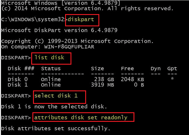 方法 2: コマンドを使用して読み取り専用メモリ カードを取り外す