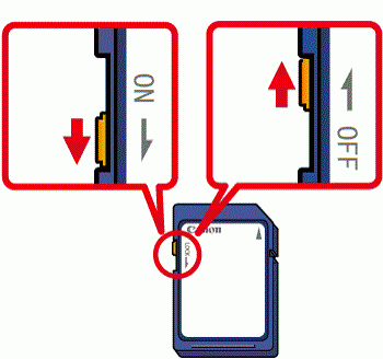 書き込みができないメモリーカードに物理的なロックスイッチが付いているか確認してください。ロックスイッチを「ON」から「OFF」にすると、SDカードのロックが解除されます。