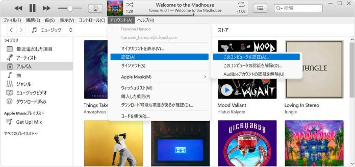 iTunes では許可されるデバイスの数が制限されているため、MacBook を販売または交換する前に iTunes からログアウトする必要があります。工場出荷時の設定に戻したいコンピュータで iTunes を開き、[アカウント] > [認証] > [このコンピュータの認証を解除] をクリックします。