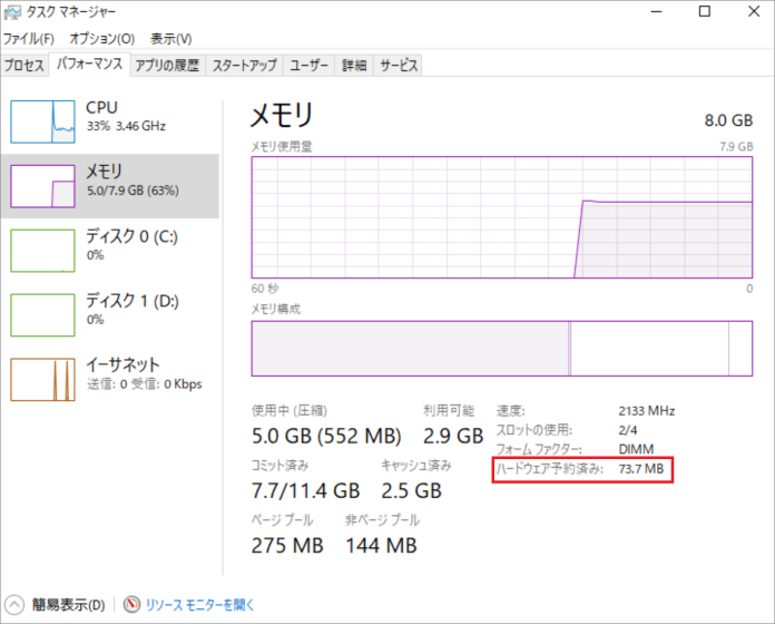 Windows がハードウェア用に大量のメモリを予約する考えられる理由