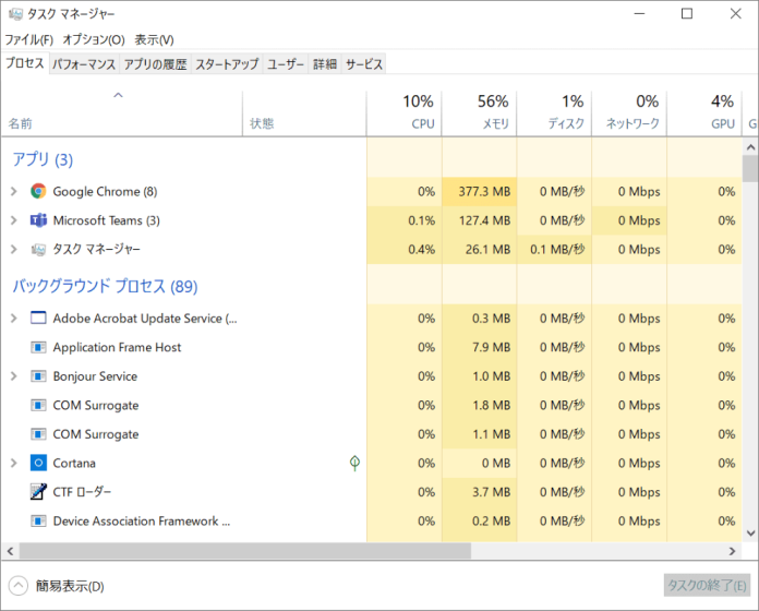 - 「プロセス」タブに切り替えると、使用中のすべてのプログラムが表示されます。すべてのプログラムが表示されない場合は、「詳細表示」オプションをクリックしてください。
