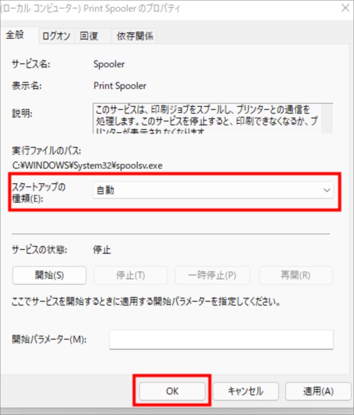 - 次に、「スタートアップの種類」オプションをクリックして「自動」に設定します。