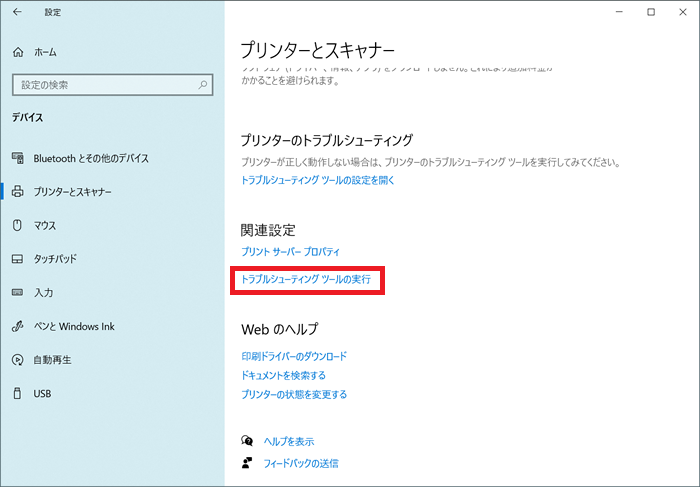 - Windows プリンターのトラブルシューティングを実行する