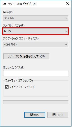 - SDカードをNTFSにフォーマットする